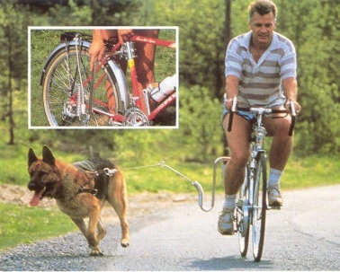 De Springer is een spiraalveer voor aan de fiets waaraan de hond op een veilige manier mee kan lopen. Hierdoor heeft u twee handen vrij aan het stuur en blijft de hond op veilige afstand van verkeer, wielen en pedalen.